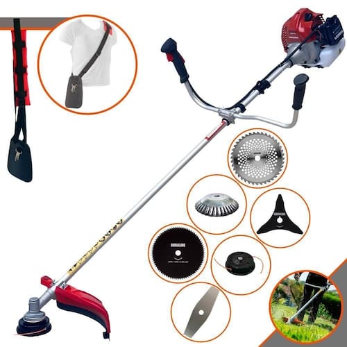 Com guidão ergonômico lateral, permite um alcance amplo e maior mobilidade, capaz de aumentar a produtividade diária. Possui motor 2 tempos á gasolina, de 43 Cilindradas; 1,7HP de potência que proporcionam maior performance e economia na operação. Seu conjunto de acessórios inclui kit de ferramentas, cinto de suporte almofadado, carretel de nylon e lâmina de corte 3 pontas.