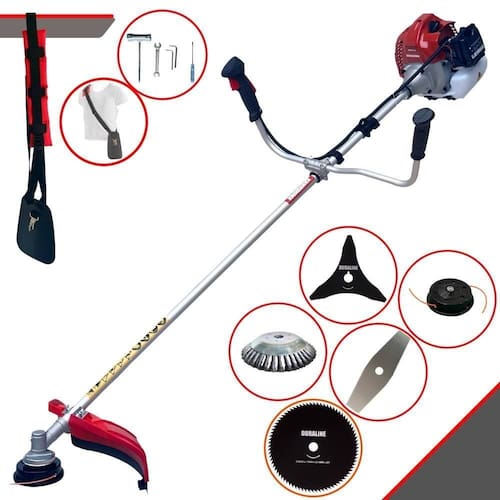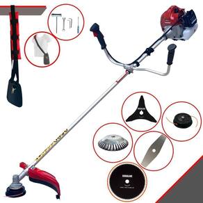 Com guidão ergonômico lateral, permite um alcance amplo e maior mobilidade, capaz de aumentar a produtividade diária. Possui motor 2 tempos á gasolina, de 43 Cilindradas; 1,7HP de potência que proporcionam maior performance e economia na operação. Seu conjunto de acessórios inclui kit de ferramentas, cinto de suporte almofadado, carretel de nylon e lâmina de corte 3 pontas.