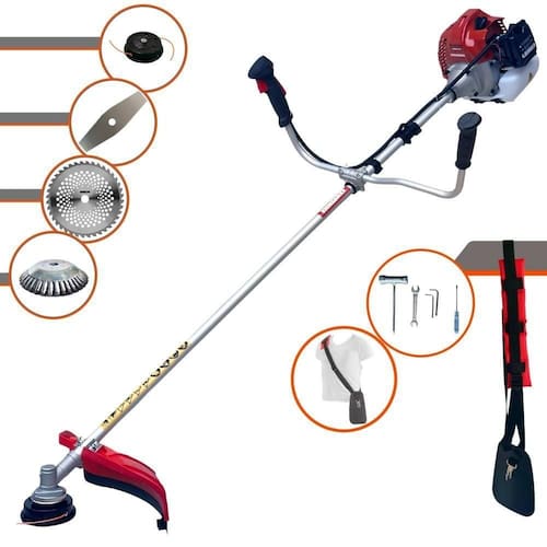 Com guidão ergonômico lateral, permite um alcance amplo e maior mobilidade, capaz de aumentar a produtividade diária. Possui motor 2 tempos á gasolina, de 43 Cilindradas; 1,7HP de potência que proporcionam maior performance e economia na operação. Seu conjunto de acessórios inclui kit de ferramentas, cinto de suporte almofadado, carretel de nylon e lâmina de corte 3 pontas.