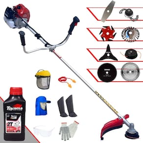 Roçadeira À Gasolina Kawashima BCJ 521L 52CC 2,5HP 2T + Faca 3 Pontas + Faca 40 Dentes + Faca 80 Dentes + Escova Rotativa 24 cerdas + Trimmer + Faca 6 Pontas + Óleo Toyama FG50 500ml + Kit EPI Completo