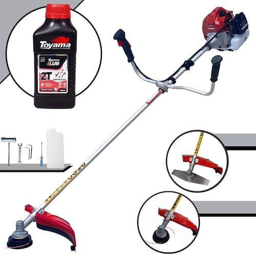 Com guidão ergonômico lateral, permite um alcance amplo e maior mobilidade, capaz de aumentar a produtividade diária. Possui motor 2 tempos á gasolina, de 52 Cilindradas; 2,5HP de potência que proporcionam maior performance e economia na operação. Seu conjunto de acessórios inclui kit de ferramentas, cinto de suporte almofadado, carretel de nylon e lâmina de corte 3 pontas.