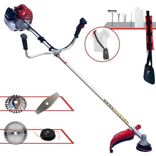 Com guidão ergonômico lateral, permite um alcance amplo e maior mobilidade, capaz de aumentar a produtividade diária. Possui motor 2 tempos á gasolina, de 52 Cilindradas; 2,5HP de potência que proporcionam maior performance e economia na operação. Seu conjunto de acessórios inclui kit de ferramentas, cinto de suporte almofadado, carretel de nylon e lâmina de corte 3 pontas.