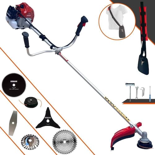 Com guidão ergonômico lateral, permite um alcance amplo e maior mobilidade, capaz de aumentar a produtividade diária. Possui motor 2 tempos á gasolina, de 52 Cilindradas; 2,5HP de potência que proporcionam maior performance e economia na operação. Seu conjunto de acessórios inclui kit de ferramentas, cinto de suporte almofadado, carretel de nylon e lâmina de corte 3 pontas.