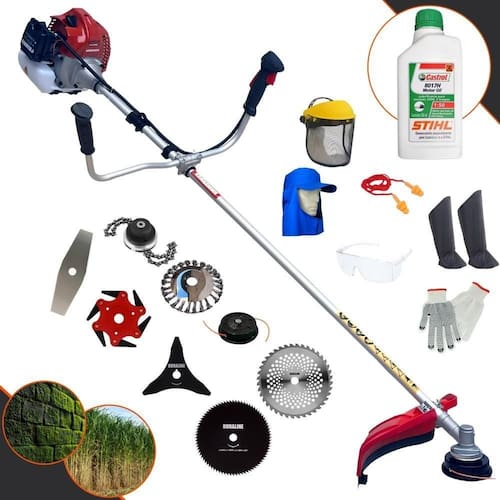 Roçadeira Profissional À Gasolina Kawashima BCJ 521L 52CC 2,5HP 2T + Faca 3 Pontas + Faca 40 Dentes + Faca 80 Dentes + Escova Rotativa 24 cerdas + Trimmer + Faca 6 Pontas + Óleo Castrol Stihl 2T 500ml + Kit EPI Completo