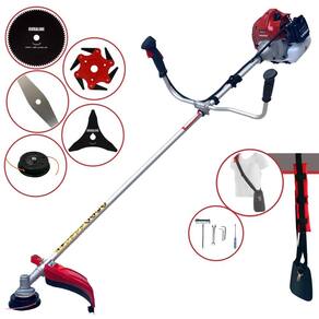 Com guidão ergonômico lateral, permite um alcance amplo e maior mobilidade, capaz de aumentar a produtividade diária. Possui motor 2 tempos á gasolina, de 52 Cilindradas; 2,5HP de potência que proporcionam maior performance e economia na operação. Seu conjunto de acessórios inclui kit de ferramentas, cinto de suporte almofadado, carretel de nylon e lâmina de corte 3 pontas.