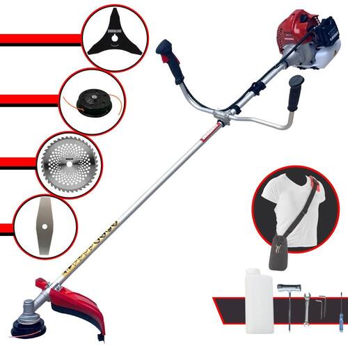 Com guidão ergonômico lateral, permite um alcance amplo e maior mobilidade, capaz de aumentar a produtividade diária. Possui motor 2 tempos á gasolina, de 52 Cilindradas; 2,5HP de potência que proporcionam maior performance e economia na operação. Seu conjunto de acessórios inclui kit de ferramentas, cinto de suporte almofadado, carretel de nylon e lâmina de corte 3 pontas.