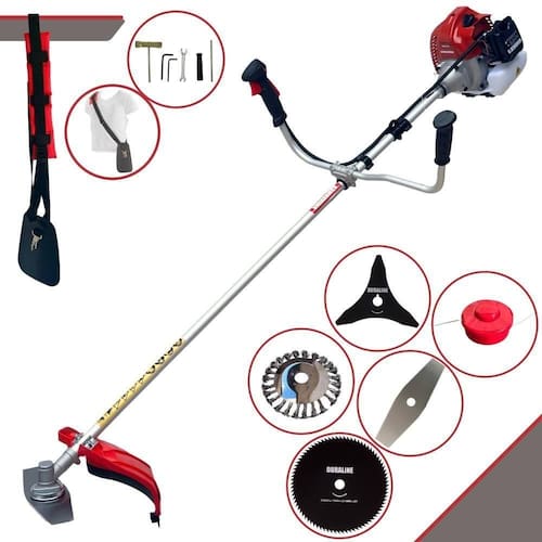 Com guidão ergonômico lateral, permite um alcance amplo e maior mobilidade, capaz de aumentar a produtividade diária. Possui motor 2 tempos á gasolina, de 62 Cilindradas; 3HP de potência que proporcionam maior performance e economia na operação. Seu conjunto de acessórios inclui kit de ferramentas, cinto de suporte almofadado, carretel de nylon e lâmina de corte 3 pontas.