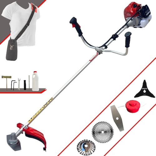 Com guidão ergonômico lateral, permite um alcance amplo e maior mobilidade, capaz de aumentar a produtividade diária. Possui motor 2 tempos á gasolina, de 62 Cilindradas; 3HP de potência que proporcionam maior performance e economia na operação.Seu conjunto de acessórios inclui kit de ferramentas, cinto de suporte almofadado, carretel de nylon e lâmina de corte 3 pontas.
