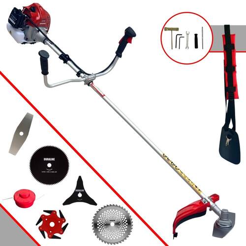 Com guidão ergonômico lateral, permite um alcance amplo e maior mobilidade, capaz de aumentar a produtividade diária. Possui motor 2 tempos á gasolina, de 62 Cilindradas; 3HP de potência que proporcionam maior performance e economia na operação. Seu conjunto de acessórios inclui kit de ferramentas, cinto de suporte almofadado, carretel de nylon e lâmina de corte 3 pontas.