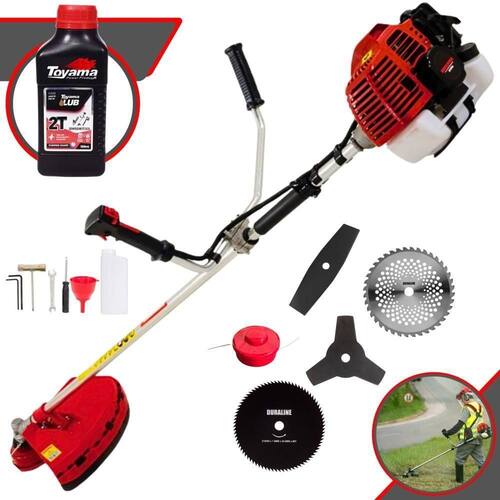 Roçadeira Profissional Lateral Kawashima KW43-L À Gasolina 2T 43cc 1,7HP Com Lâmina 3 Pontas + Faca 2 Pontas 330mm + Faca 40 Dentes 255mm + Faca 80 Dentes 255mm + Óleo Toyama LUB FG50 500ml 2T