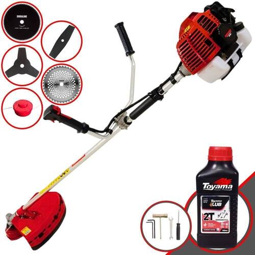 Roçadeira Profissional Lateral Kawashima KW43-L À Gasolina 2T 43cc 1,7HP Com Lâmina 3 Pontas + Faca 2 Pontas 330mm + Faca 40 Dentes 255mm + Faca 80 Dentes 255mm + Óleo Toyama LUB FG50 500ml 2T