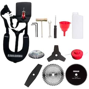 Roçadeira Profissional Lateral Kawashima KW43-L À Gasolina 2T 43cc 1,7HP Com Lâmina 3 Pontas + Faca 2 Pontas 330mm + Faca 40 Dentes 255mm + Faca 80 Dentes 255mm + Escova Rotativa 38 Cerdas 200mm + Óleo TOYAMA LUB FG50 500ml 2T