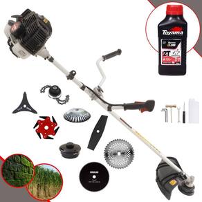 Roçadeira Kawashima KW43-LE À Gasolina 2T 43cc 1,7HP Com Lâmina 3 Pontas + Faca 2 Pontas + Faca 40 Dentes + Faca 80 Dentes + Faca 6 Pontas + Escova Rotativa 38 Cerdas + Trimmer + Óleo TOYAMA LUB FG50 500ml 2T