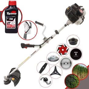 Roçadeira Profissional Kawashima KW43-LE À Gasolina 2T 43cc 1,7HP Com Lâmina 3 Pontas + Faca 2 Pontas + Faca 40 Dentes + Faca 80 Dentes + Faca 6 Pontas + Escova Rotativa 38 Cerdas + Trimmer + Óleo TOYAMA LUB FG50 500ml 2T