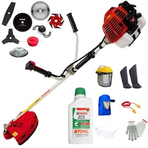 Roçadeira Lateral Kawashima KW52-L À Gasolina 2T 52c 2,5HP Com Lâmina 3 Pontas + Faca 2 Pontas 330mm + Faca 40 Dentes 255mm + Faca 80 Dentes 255mm + Faca 6 Pontas 250mm + Escova Rotativa 38 Cerdas 200mm + Trimmer + Óleo Castrol Stihl 500ml 2 Tempos + Kit EPI Completo
