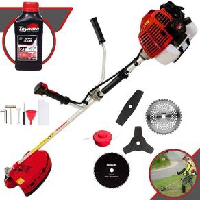 Roçadeira Profissional Lateral Kawashima KW52-L À Gasolina 2T 52c 2,5HP Com Lâmina 3 Pontas + Faca 2 Pontas 330mm + Faca 40 Dentes 255mm + Faca 80 Dentes 255mm + Óleo TOYAMA LUB FG50 500ml 2T