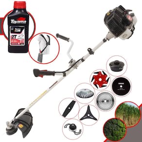 Roçadeira Kawashima KW52-LE À Gasolina 2T 52cc 2,5HP Com Lâmina 3 Pontas + Faca 2 Pontas + Faca 40 Dentes + Faca 80 Dentes + Faca 6 Pontas + Escova Rotativa 38 Cerdas + Trimmer + Óleo TOYAMA LUB FG50 500ml 2T