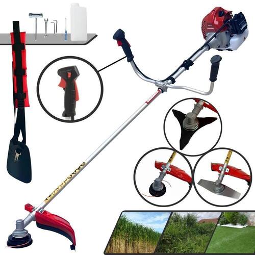 Com guidão ergonômico lateral, permite um alcance amplo e maior mobilidade, capaz de aumentar a produtividade diária. Possui motor 2 tempos á gasolina, de 52 Cilindradas; 2,5HP de potência que proporcionam maior performance e economia na operação. Seu conjunto de acessórios inclui kit de ferramentas, cinto de suporte almofadado, carretel de nylon e lâmina de corte 3 pontas.