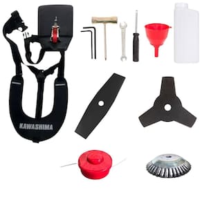 Roçadeira Profissional Lateral Kawashima KW43-L À Gasolina 2T 43cc 1,7HP Com Lâmina 3 Pontas + Faca 2 Pontas 330mm 2,7mm + Escova Rotativa 38 Cerdas 200mm