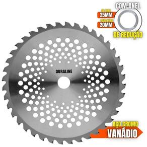 O DISCO DE CORTE 40 Dentes de Vídea acompanha um anel de redução, ou seja, pode ser utiizada para roçadeiras de furo 20mm ou 25mm além de possui pintura feita por Cataforese a qual é mais resistente à corrosão. Seus dentes de vídea soldados à laser possuem encaixe especial, garantindo mais segurança, desempenho e durabilidade, as lâminas são balanceadas com menor vibração, corte contínuo e suave, com mais conforto ao operador e mais longevidade para a roçadeira. Possui maior rendimento no trabalho e não precisa ser afiada antes do uso, uma vez que possuem ponta 4 lados de polimero, solda de ponta tipo U. Ideal para terrenos com cascalhos e pequenos galhos para serrar.