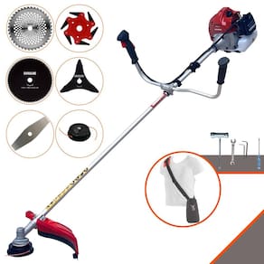 Com guidão ergonômico lateral, permite um alcance amplo e maior mobilidade, capaz de aumentar a produtividade diária. Possui motor 2 tempos á gasolina, de 52 Cilindradas; 2,5HP de potência que proporcionam maior performance e economia na operação. Seu conjunto de acessórios inclui kit de ferramentas, cinto de suporte almofadado, carretel de nylon e lâmina de corte 3 pontas.