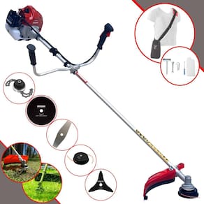 Com guidão ergonômico lateral, permite um alcance amplo e maior mobilidade, capaz de aumentar a produtividade diária. Possui motor 2 tempos á gasolina, de 43 Cilindradas; 1,7HP de potência que proporcionam maior performance e economia na operação. Seu conjunto de acessórios inclui kit de ferramentas, cinto de suporte almofadado, carretel de nylon e lâmina de corte 3 pontas.