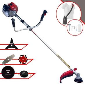 Com guidão ergonômico lateral, permite um alcance amplo e maior mobilidade, capaz de aumentar a produtividade diária. Possui motor 2 tempos á gasolina, de 52 Cilindradas; 2,5HP de potência que proporcionam maior performance e economia na operação. Seu conjunto de acessórios inclui kit de ferramentas, cinto de suporte almofadado, carretel de nylon e lâmina de corte 3 pontas.