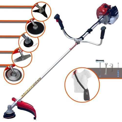 Com guidão ergonômico lateral, permite um alcance amplo e maior mobilidade, capaz de aumentar a produtividade diária. Possui motor 2 tempos á gasolina, de 43 Cilindradas; 1,7HP de potência que proporcionam maior performance e economia na operação. Seu conjunto de acessórios inclui kit de ferramentas, cinto de suporte almofadado, carretel de nylon e lâmina de corte 3 pontas.