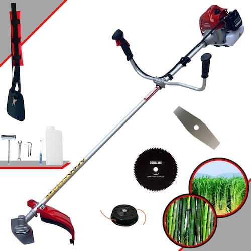 Com guidão ergonômico lateral, permite um alcance amplo e maior mobilidade, capaz de aumentar a produtividade diária. Possui motor 2 tempos á gasolina, de 43 Cilindradas; 1,7HP de potência que proporcionam maior performance e economia na operação. Seu conjunto de acessórios inclui kit de ferramentas, cinto de suporte almofadado, carretel de nylon e lâmina de corte 3 pontas.