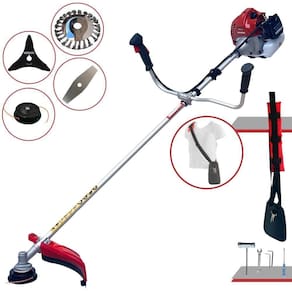 Com guidão ergonômico lateral, permite um alcance amplo e maior mobilidade, capaz de aumentar a produtividade diária. Possui motor 2 tempos á gasolina, de 52 Cilindradas; 2,5HP de potência que proporcionam maior performance e economia na operação. Seu conjunto de acessórios inclui kit de ferramentas, cinto de suporte almofadado, carretel de nylon e lâmina de corte 3 pontas.