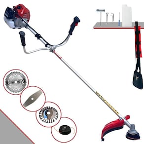 Com guidão ergonômico lateral, permite um alcance amplo e maior mobilidade, capaz de aumentar a produtividade diária. Possui motor 2 tempos á gasolina, de 52 Cilindradas; 2,5HP de potência que proporcionam maior performance e economia na operação. Seu conjunto de acessórios inclui kit de ferramentas, cinto de suporte almofadado, carretel de nylon e lâmina de corte 3 pontas.
