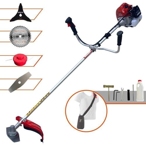 Com guidão ergonômico lateral, permite um alcance amplo e maior mobilidade, capaz de aumentar a produtividade diária. Possui motor 2 tempos á gasolina, de 62 Cilindradas; 3HP de potência que proporcionam maior performance e economia na operação. Seu conjunto de acessórios inclui kit de ferramentas, cinto de suporte almofadado, carretel de nylon e lâmina de corte 3 pontas.