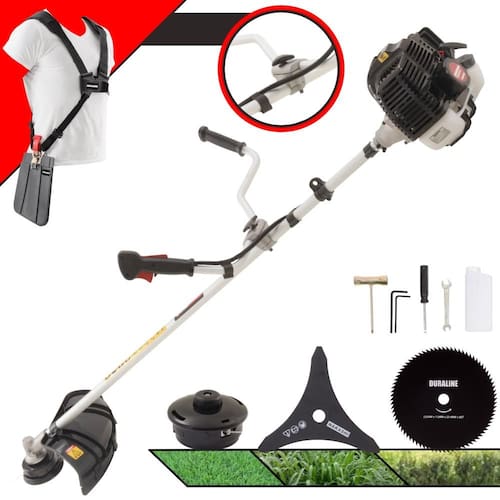 A Roçadeira Kawashima KW43LE conta com motor 2 tempos à gasolina, 43 cilindradas e potência de 1,7HP. Projetada para facilitar o trabalho de roçada de capim, arbustos, pastagens, controle de pastos, trabalhos de jardinagem, limpeza e manutenção de grandes áreas verdes com sua utilização em sítios; fazendas e chácaras. Ideal também para manutenção e limpeza de vias públicas e rodovias. Desenvolvida com uma estrutura resistente e suporte do guidão reforçado, seus componentes possuem alta durabilidade. A vantagem da roçadeira é que pode ser usada em locais irregulares, morros, buracos, florestas, entre outro com dificuldade de acesso. Produto de alta qualidade, desempenho e durabilidade.
