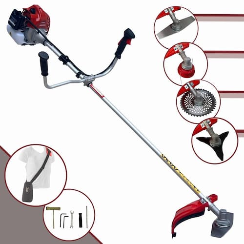 Com guidão ergonômico lateral, permite um alcance amplo e maior mobilidade, capaz de aumentar a produtividade diária. Possui motor 2 tempos á gasolina, de 62 Cilindradas; 3HP de potência que proporcionam maior performance e economia na operação. Seu conjunto de acessórios inclui kit de ferramentas, cinto de suporte almofadado, carretel de nylon e lâmina de corte 3 pontas.