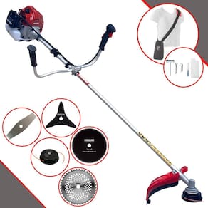 Com guidão ergonômico lateral, permite um alcance amplo e maior mobilidade, capaz de aumentar a produtividade diária. Possui motor 2 tempos á gasolina, de 43 Cilindradas; 1,7HP de potência que proporcionam maior performance e economia na operação. Seu conjunto de acessórios inclui kit de ferramentas, cinto de suporte almofadado, carretel de nylon e lâmina de corte 3 pontas.