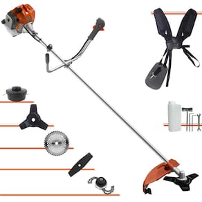 Com guidão ergonômico lateral, permite um alcance amplo e maior mobilidade, capaz de aumentar a produtividade diária. Possui motor 2 tempos á gasolina, de 42,7 Cilindradas (43cc) 9.000 de rotação 1,7HP de potência que proporcionam maior performance e economia na operação.Seu conjunto de acessórios inclui kit de ferramentas, cinto de suporte duplo almofadado, carretel de nylon e lâmina de corte 3 pontas.