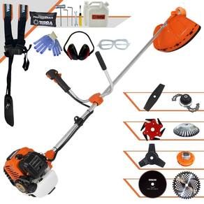 Roçadeira Profissional Lateral Terra GR520XP À Gasolina 2 Tempos 52cc 2,5HP Com Lâmina 40 Dentes + Faca 2 Pontas 330mm 2,7mm + Faca 3 Pontas 255mm 2,9mm + Faca 6 Pontas 250mm + Faca 80 Dentes 255mm 1,5mm + Escova Rotativa 38 Cerdas 200mm + Trimmer