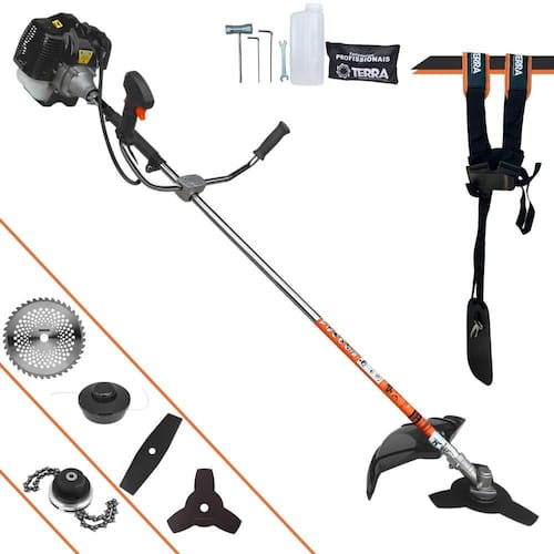 Roçadeira Lateral Terra GRH430 À Gasolina 43cc 1,7HP Alta Rotação Para Todos os Tipos de Trabalho Com Carretel de Nylon + Kit de 4 Lâminas de Cortes