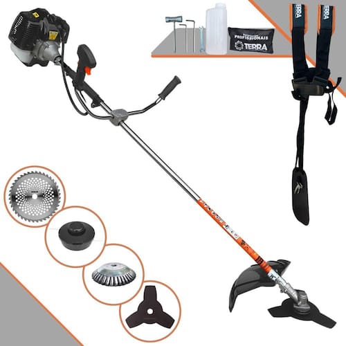 Roçadeira Lateral Terra GRH430 À Gasolina 43cc 1,7HP Multifuncional Com Carretel e Faca 3 Pontas + EXTRA Faca 40 Dentes Vídea e Escova de Aço Circular