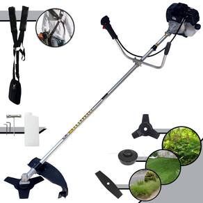 Com guidão ergonômico lateral, permite um alcance amplo e maior mobilidade, capaz de aumentar a produtividade diária. Possui motor 2 tempos á gasolina, de 43 Cilindradas, 10.000 de rotação 1,7HP de potência que proporcionam maior performance e economia na operação.Seu conjunto de acessórios inclui kit de ferramentas, cinto de suporte duplo almofadado, carretel de nylon e lâmina de corte 3 pontas.