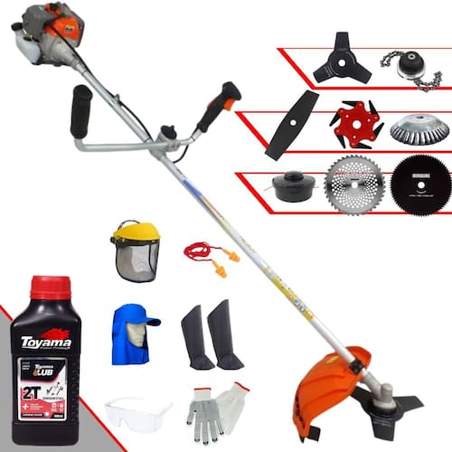 Roçadeira Lateral Vulcan VR330P À Gasolina 2 Tempos 33cc 1,2HP + Faca 2 Pontas + Faca 40 Dentes + Faca 80 Dentes + Faca 6 Pontas + Trimmer + Escova Rotativa + Óleo Toyama + KIT EPI