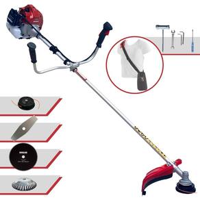 Com guidão ergonômico lateral, permite um alcance amplo e maior mobilidade, capaz de aumentar a produtividade diária. Possui motor 2 tempos á gasolina, de 43 Cilindradas; 1,7HP de potência que proporcionam maior performance e economia na operação. Seu conjunto de acessórios inclui kit de ferramentas, cinto de suporte almofadado, carretel de nylon e lâmina de corte 3 pontas.