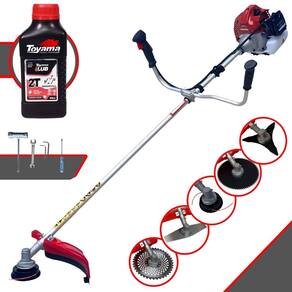 Roçadeira À Gasolina Kawashima BCJ 431L 42,7CC 1,7HP 2T + Faca 3 Pontas Duraline 255mm + Faca 40 Dentes Duraline 255mm + Faca 80 Dentes Duraline 255mm + Óleo Toyama FG50 500ml