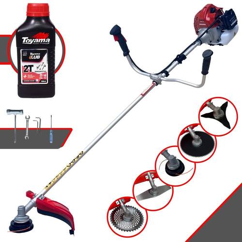 Com guidão ergonômico lateral, permite um alcance amplo e maior mobilidade, capaz de aumentar a produtividade diária. Possui motor 2 tempos á gasolina, de 43 Cilindradas; 1,7HP de potência que proporcionam maior performance e economia na operação. Seu conjunto de acessórios inclui kit de ferramentas, cinto de suporte almofadado, carretel de nylon e lâmina de corte 3 pontas.