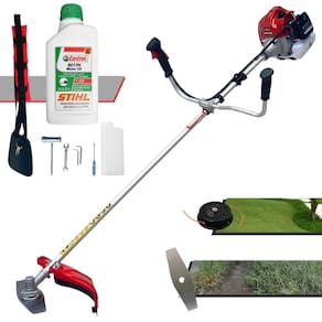 Com guidão ergonômico lateral, permite um alcance amplo e maior mobilidade, capaz de aumentar a produtividade diária. Possui motor 2 tempos á gasolina, de 43 Cilindradas; 1,7HP de potência que proporcionam maior performance e economia na operação. Seu conjunto de acessórios inclui kit de ferramentas, cinto de suporte almofadado, carretel de nylon e lâmina de corte 3 pontas.