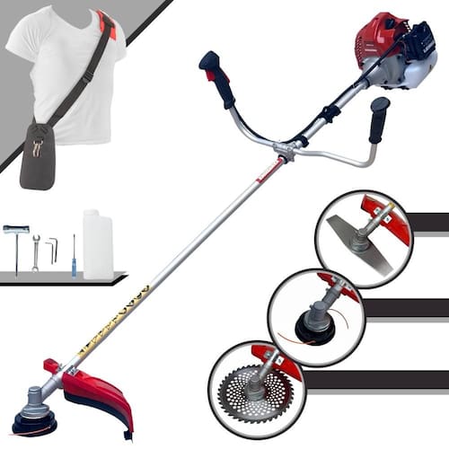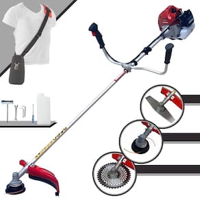 Com guidão ergonômico lateral, permite um alcance amplo e maior mobilidade, capaz de aumentar a produtividade diária. Possui motor 2 tempos á gasolina, de 43 Cilindradas; 1,7HP de potência que proporcionam maior performance e economia na operação. Seu conjunto de acessórios inclui kit de ferramentas, cinto de suporte almofadado, carretel de nylon e lâmina de corte 3 pontas.