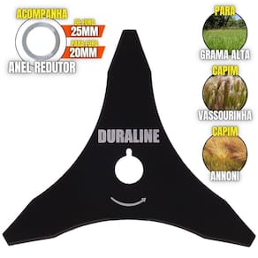 A LÂMINA (FACÃO) 2 Pontas acompanha um anel de redução que pode ser utiizada para roçadeiras de furo 20mm ou 25mm, sendo feita em aço cromo vanádio que garante mais , desempenho e durabilidade. É uma lâmina balanceada, fazendo com que haja menor vibração, corte contínuo e suave, com mais conforto ao operador e mais longevidade para a roçadeira. Possui maior rendimento no trabalho e não precisa ser afiada antes do . É uma lâmina Multi de 2 pontas que pode ser aplicada para diferentes trabalhos, possui material reforçado que é ideal para trabalhos pesados, podendo cortar os seguintes capins: Capim Grosso, Capim Elefante, Guanxuma, Annoni, Vassourinha, Capim Napier, Capim Sapê e entre outras variantes de capins.