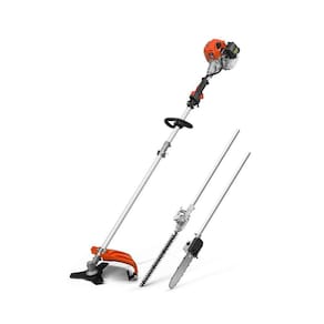 A Multifuncional a Gasolina Tekna MF260XS une roçadeira, podador de altura e aparador de cerca viva em um só produto. Sua troca de acessórios é rápida, o que torna o trabalho mais fácil e prático.