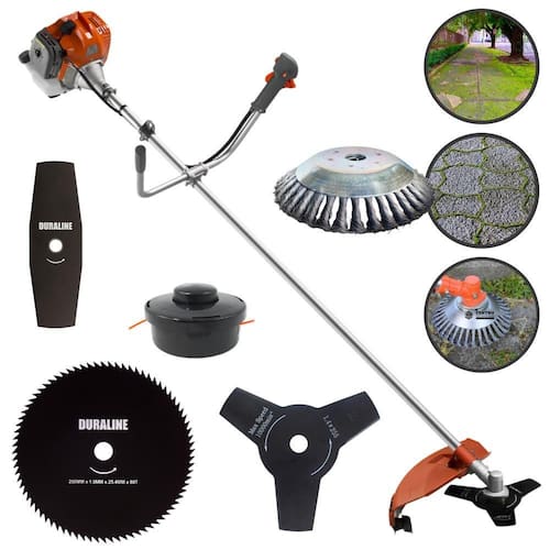 Roçadeira Multifuncional Á Gasolina Tekna RL520AC 5 em 1 Com Carretel Nylon, Lâmina 3 Pontas + Faca 2 Pontas + Disco De Corte e Lâmina Escova