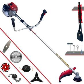Com guidão ergonômico lateral, permite um alcance amplo e maior mobilidade, capaz de aumentar a produtividade diária. Possui motor 2 tempos á gasolina, de 52 Cilindradas; 2,5HP de potência que proporcionam maior performance e economia na operação. Seu conjunto de acessórios inclui kit de ferramentas, cinto de suporte almofadado, carretel de nylon e lâmina de corte 3 pontas.
